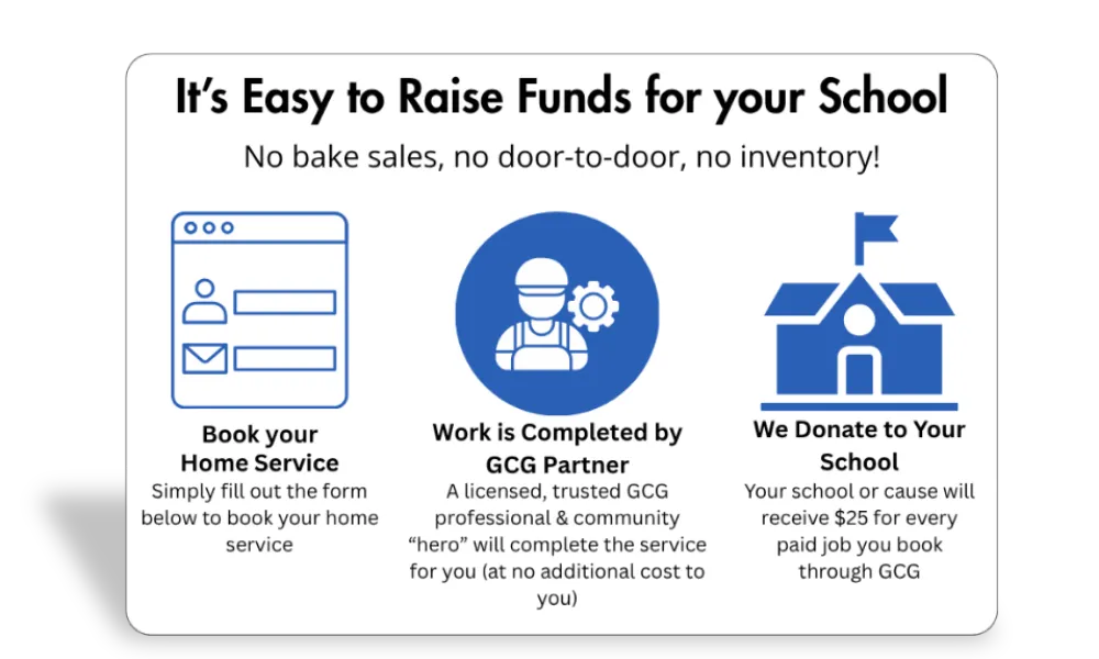 We’re excited to have you here! Good Call Go makes it easy to support your school, club, or cause without selling anything or attending endless fundraisers. Instead, every time you book a home service — from A/C repairs and plumbing to roofing, electrical, or other everyday needs — part of the payment goes directly back to the organization you’re supporting.