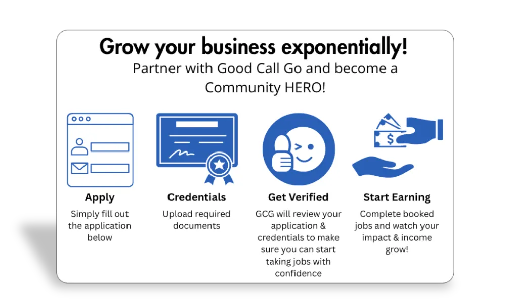 Join a trusted network of licensed contractors making a difference with every job. When families choose your services through Good Call Go, you’ll be recognized as a community hero while growing your business. We'll make a donation to a school or community cause for every paid service call.